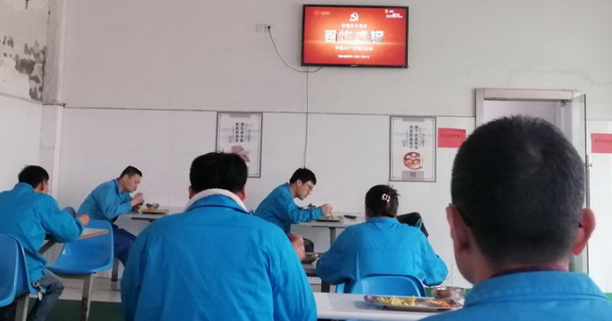 餐廳電視循環播放《百煉成鋼:中國共產黨的100年》《孤島32年》及紅色電影等學習教育視頻