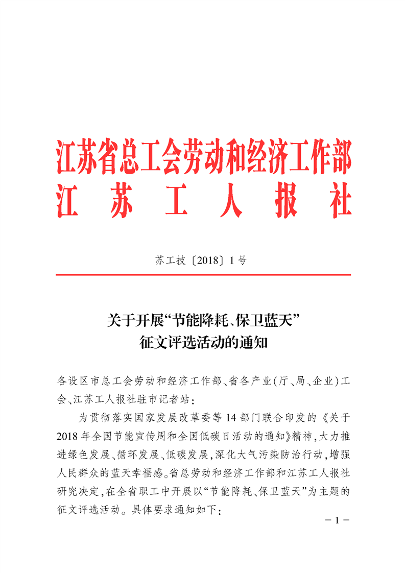關于開展“節能降耗、保衛藍天”征文評選活動的通知