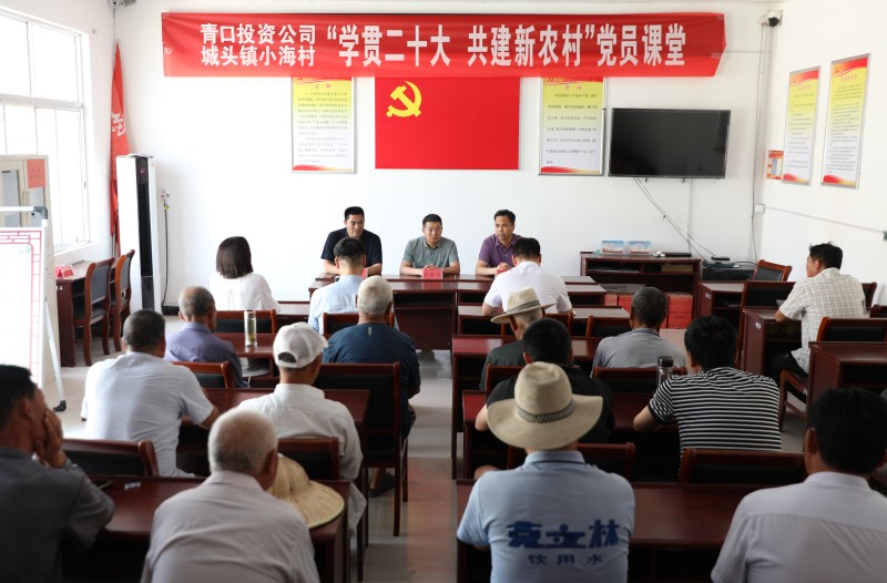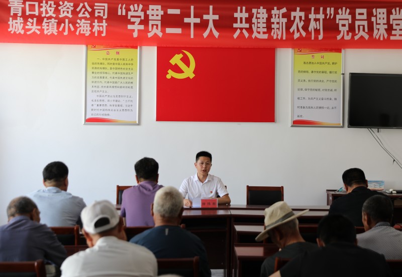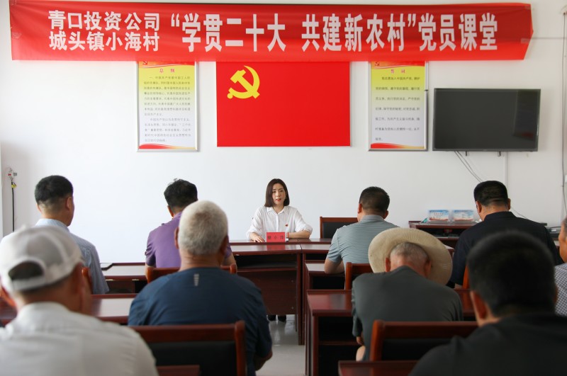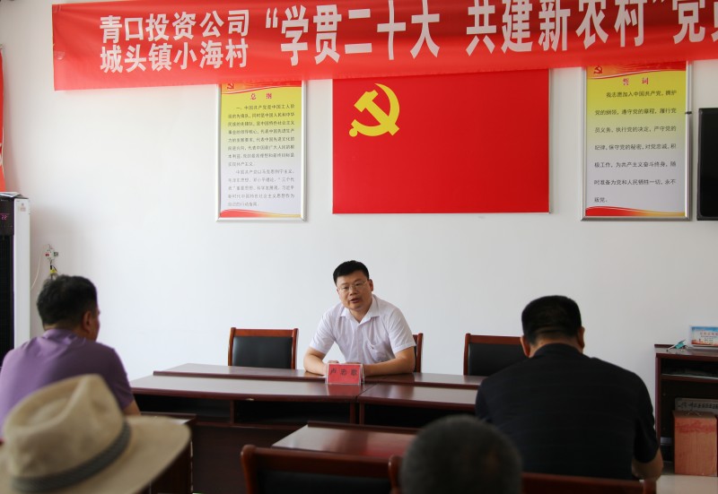 為推動(dòng)黨的二十大精神在鄉(xiāng)村落地生根,6月28日上午,青口投資公司、城頭鎮(zhèn)小海村聯(lián)合開展“學(xué)貫二十大 共建新農(nóng)村”黨員課堂,由公司機(jī)關(guān)優(yōu)秀黨務(wù)干部組成的二十大精神宣講隊(duì),走進(jìn)結(jié)對(duì)共建的贛榆區(qū)城頭鎮(zhèn)小海村開展集中式、通俗化宣講。公司黨委副書記、工會(huì)主席梁永,城頭鎮(zhèn)副鎮(zhèn)長(zhǎng)王延光,城頭鎮(zhèn)小海村支部書記徐坤參加活動(dòng)。