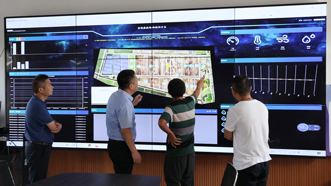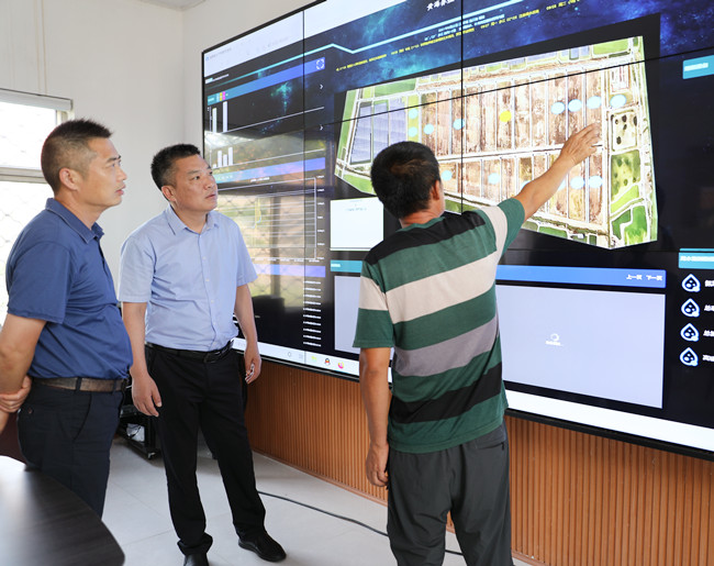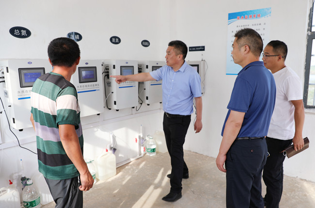 在黃海養殖場,史董認真聽取養殖場負責同志對尾水處理工藝的介紹,詳細了解黃海養殖場物聯網平臺、污水處理流程、水質信息采集與監測系統等,并實地考察了尾水處理監測室、污水循環處理設施、人工濕地生態系統等,就污水處理工程設計施工、污水監測指標、養殖生產用水等問題與養殖場負責同志進行了深入的探討與交流。