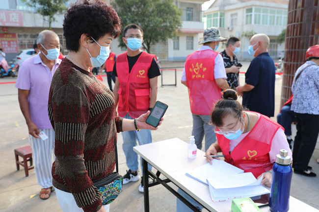 為保障核酸檢測工作順利進行,青口公司黨員服務隊志愿者和黃沙坨社區工作人員,提前劃分好信息登記組、人員引導組、秩序保障組和后期保障組,全方位協調管控核酸檢測現場,保障活動順利開展。在核酸檢測開始前,不少居民已經來到核酸檢測現場排隊等候,秩序保障組的工作人員一邊維持秩序一邊拿著小喇叭,在一旁提醒大家:請大家規范佩戴口罩,主動出示蘇康碼和行程碼,保持一米線安全距離,準備好身份證、采樣碼,有序排隊。同時,青口公司志愿者們還積極幫助沒有智能手機和不會掃碼的老年居民,進行二維碼掃碼登記,提高了核酸檢測的效率和速度,也讓拘謹的老人露出了笑臉。