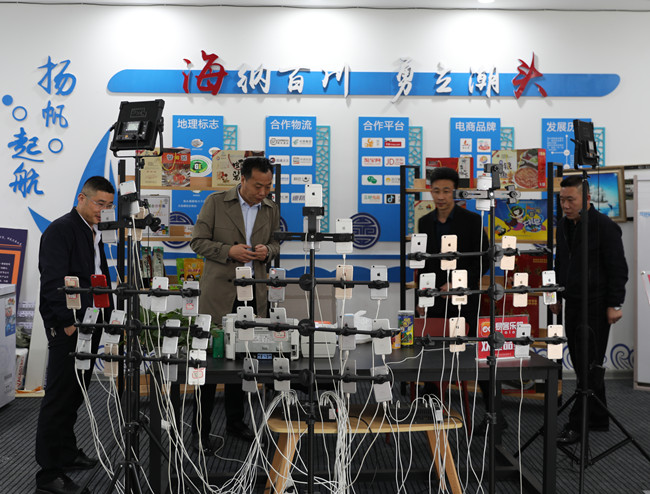 ? ? ? ?調研過程中,副總經理許太冬詳細聽取了海前村電商示范村網紅直播運行模式及相關配套設施建設情況,參觀了電商商品展銷廳、網紅直播室、后臺剪切室等電商運營工作室。