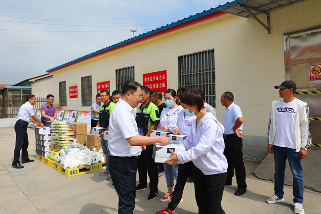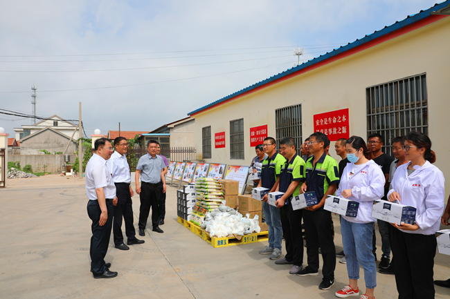 7月28日上午,集團(tuán)公司黨委副書(shū)記戴鴻鳴、工會(huì)主席劉承志一行,到青口公司慰問(wèn)堅(jiān)守在高溫一線的職工, 為職工們送去了綠豆、牛奶等防暑降溫物品,公司部分班子成員陪同慰問(wèn)。