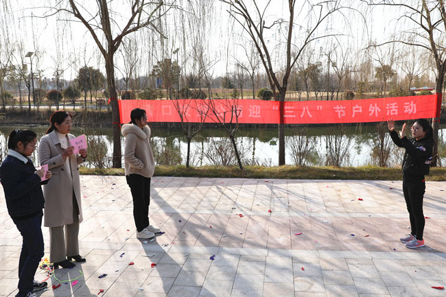 為使大家身心得到最大放松,投入戶外體驗(yàn)清新大自然,在絲路小鎮(zhèn)公園進(jìn)行了“三月女人天 別樣?jì)D女節(jié)”主題戶外活動。游戲“你畫我猜”中,隊(duì)員們有的配合默契一猜既中,也有的用肢體艱難的比劃著,引的大家捧腹大笑。“踩氣球”游戲更是讓現(xiàn)場氣氛達(dá)到沸點(diǎn),每人都放開平日工作中的嚴(yán)謹(jǐn),放松心情在場地上追逐奔跑。大家在游戲中收獲了歡聲笑語及片片感動,同時(shí),通過游戲提高大家的合作意識和進(jìn)取精神,營造濃郁節(jié)日氣氛。