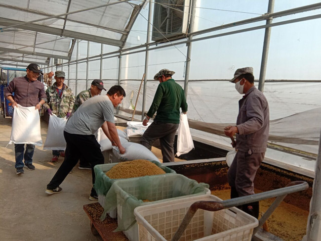 近日,生態(tài)種養(yǎng)中心大棚育秧正式開(kāi)始,全體人員迅速投入工作狀態(tài),運(yùn)送秧盤(pán),調(diào)試育秧播種設(shè)備,浸泡稻種等工作有序進(jìn)行,據(jù)統(tǒng)計(jì),今年大棚暗化育秧6萬(wàn)余盤(pán),5月5日左右完成,確保嚴(yán)格按照“3個(gè)20”計(jì)劃保障農(nóng)時(shí)。(嚴(yán)鑫)