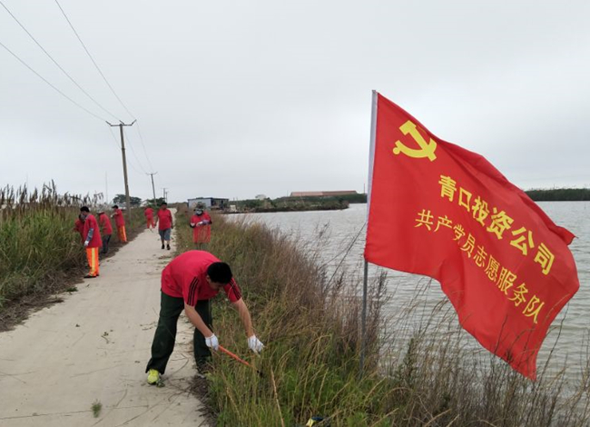 ? ? ? ?6月9日,生產生活服務中心支部黨員服務隊頂著初夏的炎熱,集結于養殖區道路、附河沿岸,開展“扛紅旗、建新功、當先鋒”實踐活動,大家手持鐵锨、鐮刀、掃帚等工具,鏟除雜草、撿拾垃圾、清掃路面。大家分工明確、行動有序,鏟的鏟、掃的掃,各司其職,充分發揮不怕臟、不怕累的奉獻精神,為職工群眾營造暢通、舒心的工作生活環境。(宋世園)