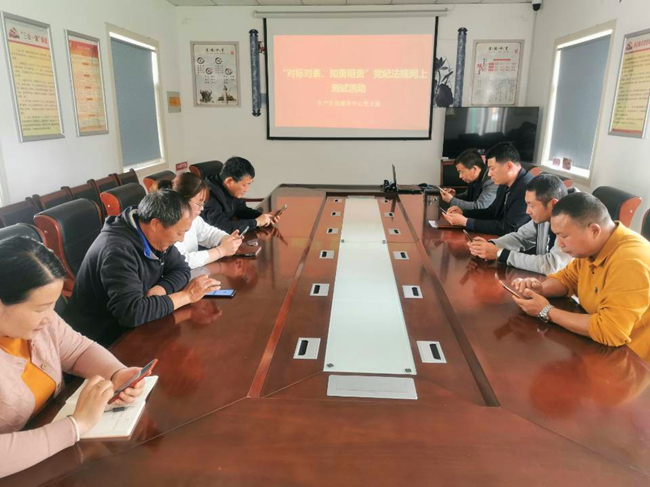 為推進“對標對表、知責明責”活動開展,引導黨員干部學黨紀、知條規、明底線,近日,生產生活服務中心黨支部組織黨員干部、管理人員參與黨規黨紀網上答題活動。(霍中波)