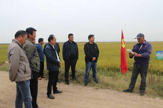 1016日下午,大新農場支部組織黨員來到黨員示范崗、技能大師趙華兵責任田開展主題教育“農田行”活動。活動中,黨員條田工趙華兵領學了《綱要》和《摘編》部分章節內容,黨員們結合工作學習實際分享了學習體會,交流了降本增效方面好的經驗和做法,針對近期發生的水稻倒伏現象認真分析和討論,為明年的農業生產積累經驗。