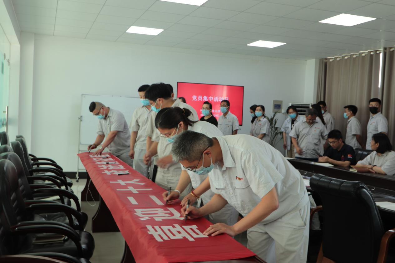 在七一即將來臨之際,公司組織全體黨員開展“喜迎二十大,奮進新征程”黨員集中活動日。活動中,與會黨員集體宣誓,重溫入黨誓詞,回憶入黨初心,并在條幅上簽名,作出鄭重承諾。公司黨支部表彰一批優(yōu)秀共產(chǎn)黨員,激勵全體黨員守初心、勇?lián)姑⒐钥穗y、建功立業(yè)。