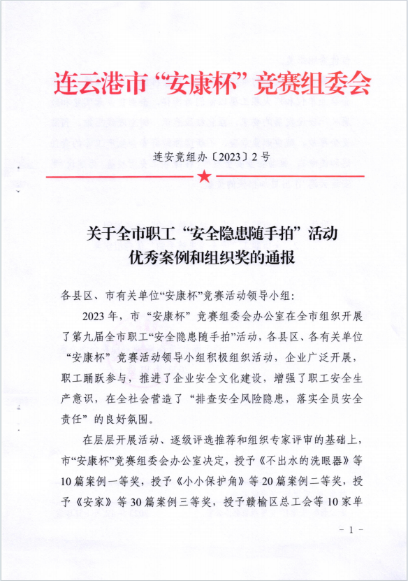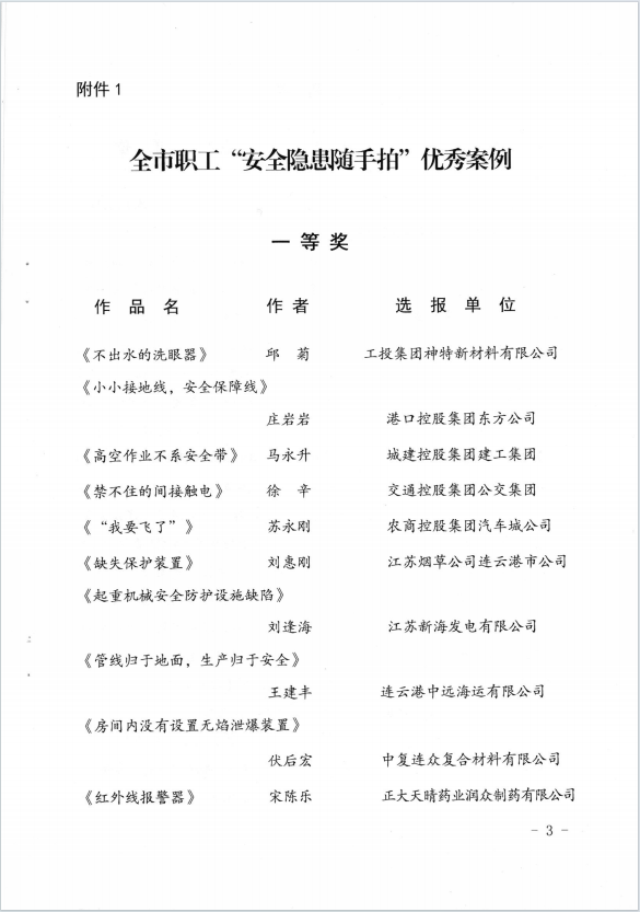近日,“安康杯”“安全隱患隨手拍”活動獲獎作品揭曉,公司員工邱菊參賽作品《不出水的洗眼器》獲得一等獎,陳士亮參賽作品《無用的燃氣報警器》獲得二等獎。(神特宣)