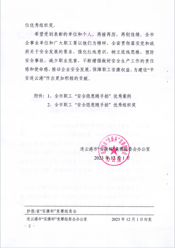 公司員工在全市職工“安全隱患隨手拍”活動中獲獎