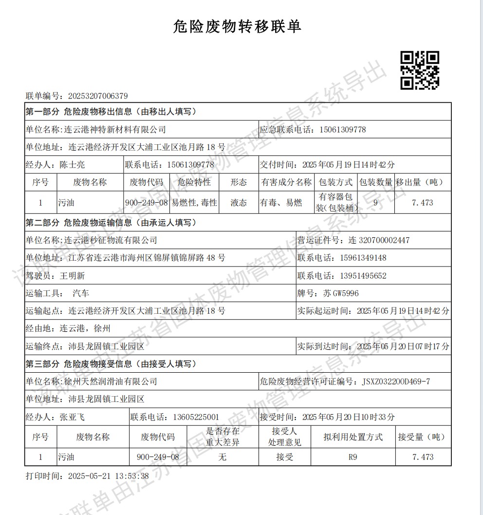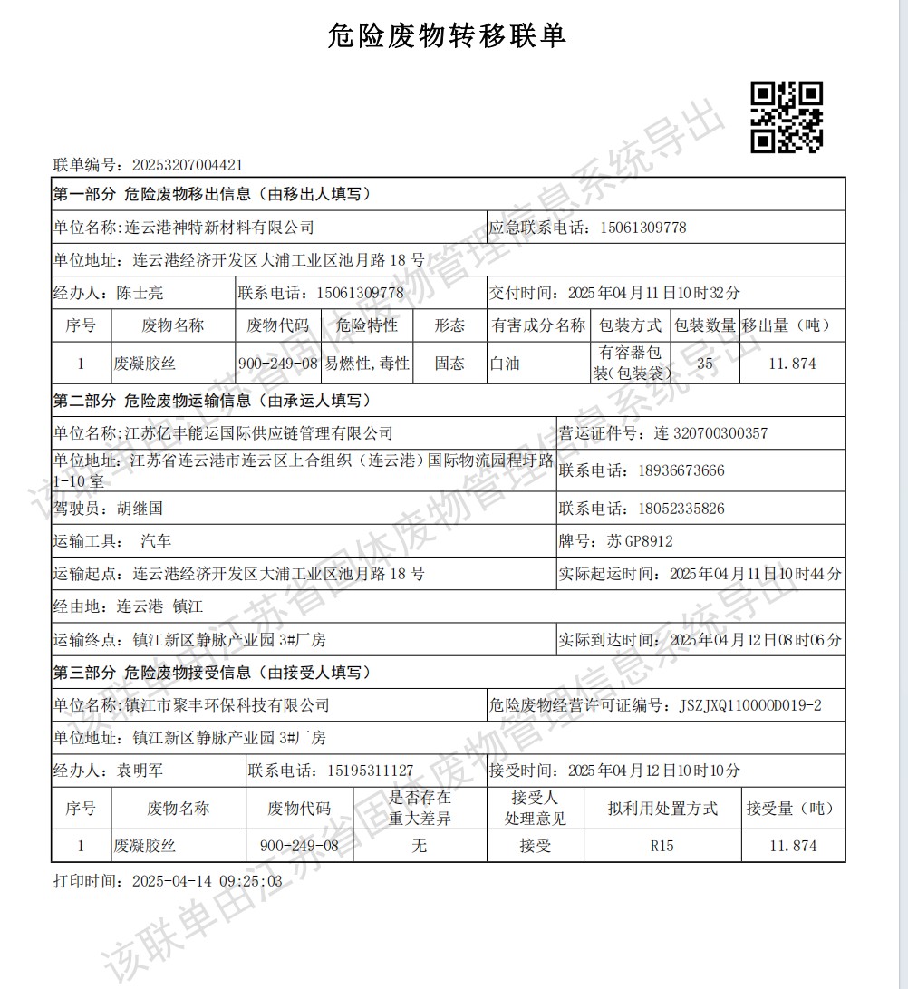 神特公司2025年第二季度危廢處置情況公示