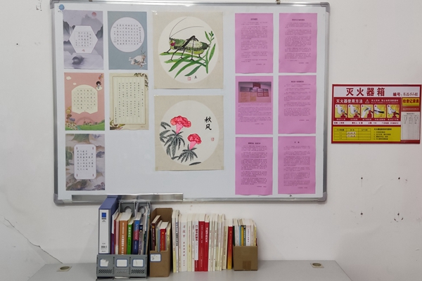走進(jìn)我們的物檢室,這是熟悉的不能再熟悉的地方,一進(jìn)門,一個小小的變化就驚訝到我了,眼前一亮。原來在我的強(qiáng)力機(jī)前面的墻上掛著一個白板,白板上貼著我們部門員工的各種作品,分為三塊,左邊是五張?zhí)圃姇ǎ疫吺枪揪W(wǎng)站登出的六篇文章,中間則是我們部門才女張云的兩幅畫,特別是橘紅色那一抹,使得整個版面亮起來了。真不知道我們的才女怎么那么有才的?