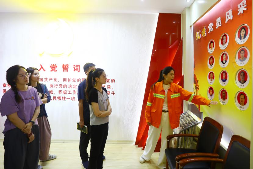 與會人員先后觀摩了環衛、綠化分公司黨建室,環衛分公司黃海大道班組王麗班組勞模工作室,參觀學習了綠化創智綠園班組三組聯建陣地建設及黨建特色工作,隨后一行觀摩了綠化分公司支委會工作例會。