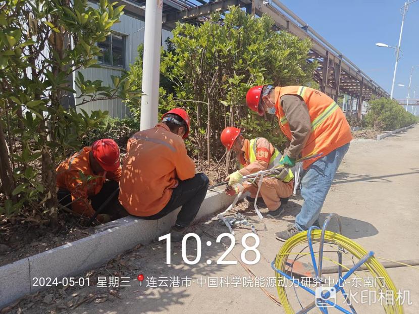 在中科院的路燈電纜施工現場,2000來米的電纜穿管工程時間緊任務重!舊路燈基座電纜孔全被泥土堵塞,穿線相當困難!在“老黃牛”喬以成帶領下,市政班組全員在崗,集思廣益克服困難。大家顧不上烈日當頭、蚊蟲叮咬,合起號子加油干,確保兩天拿下全部工程量。