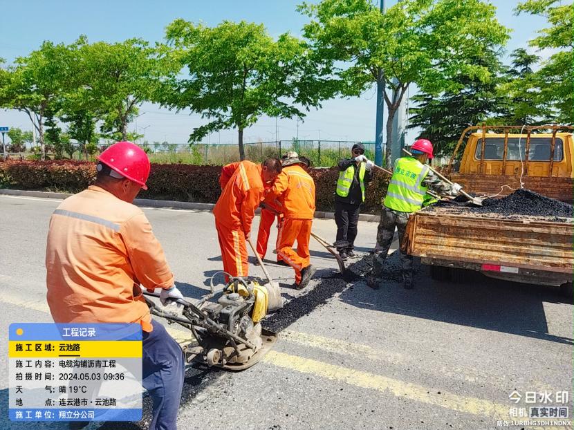 云池路電纜開槽溝下過路鋼管路面瀝青恢復工程,這是翔立人第一次干瀝青鋪設活,看起來有模有樣。