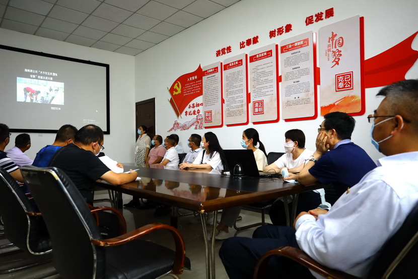 與會人員邊看邊聽講解海州灣黨支部規(guī)范化展板和本月書記項目的落實情況,以及在海州灣黨建活動室觀摩學習了上半年黨建基礎臺賬和活動影像。各黨支部就基層黨組織規(guī)范化及書記項目“點將臺”的落實情況作了匯報交流。黨委副書記楊善革針對各支部的黨建工作情況作了詳細的點評,指出各支部黨建工作中存在的不足,并要求各支部立即整改。