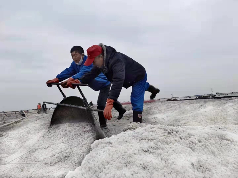 一線職工克服零下數度的嚴峻氣候,24小時馬不停蹄的搶扒鹽。原鹽搶收進入到了大決戰時刻。