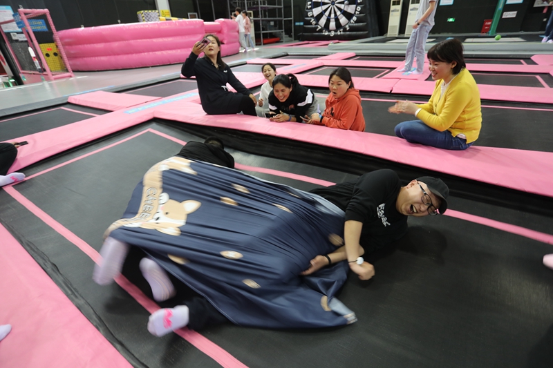 團建活動中,兩個隊伍的成員通過頭腦風暴為自己的隊伍分別取名為黛玉隊”和“寶釵隊”,分別由看起來比較柔軟實際也很柔軟的王茜和看起來很有力量,實際也很有力量的宋文靜帶領。大家喊出來鼓舞人心的口號,簡單的取名、口號環節起到了破冰的作用,瞬間拉近了隊員之間的距離。拓展訓練中,青年們共同配合,迎難而上,大膽挑戰自我,重走長征路”、“黨史60”、“四平八穩”等緊張激烈的對決中,每個團隊齊心協力攻克了一個個最初認為不可能完成的項目,共同分享了成功的喜悅和挑戰的激情,充分地體會到了團隊信任、合作共贏、換位思考、永不言敗的重要意義,圓滿完成了拓展訓練任務。