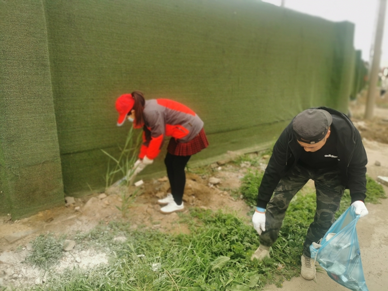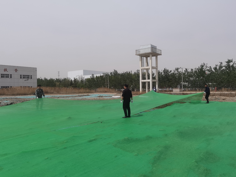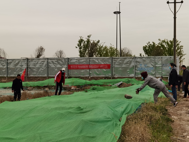 翔立分公司黨支部攜手海州灣公司黨支部對公司的車站小灘進行環境整治,為裸露在外的土地進行防塵網鋪設。