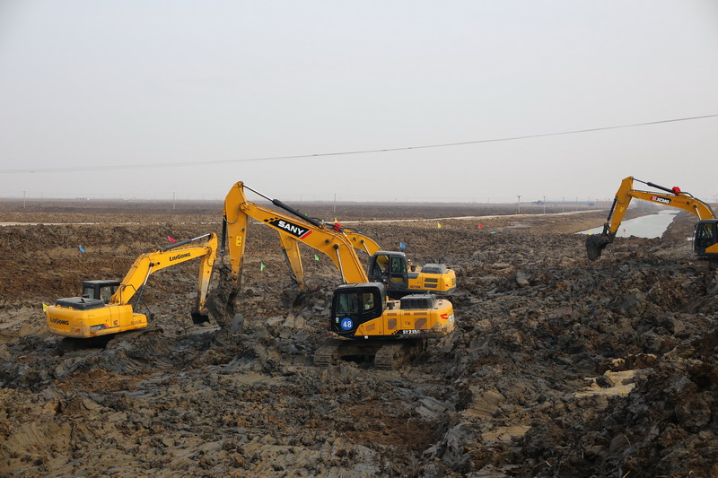 ? ? ? ? “本周,開塔河工程一定要實現引水入池......”根據公司作戰指令,養殖發包戰工地上,十余臺大型挖掘機一字排開,緊張有序作業。