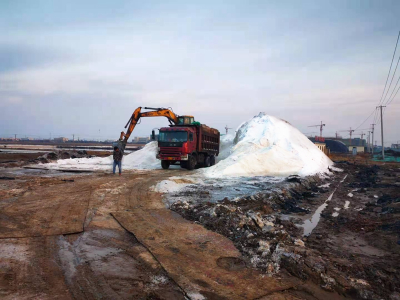 為了確保圩存鹽迅速銷售完畢,投資公司大年初三就恢復了原鹽的集運工作,銷售工作人員不分黑夜白晝,不論假期還是工作日,投身在集運一線和銷售一線,這群“幕后英雄”充分體現出“老臺北”傳承下來的“釘釘子”精神,跑斷腿、磨破嘴,協調大客戶,開拓新客戶,在兄弟單位供銷公司的大力幫助下,從春節復工至今,僅僅只用了十來天的時間就集運原鹽5200噸,“清空”先鋒東灘的全部存鹽。
