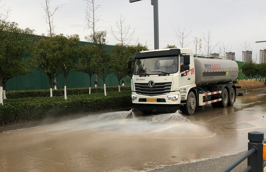 這次任務不同于以往,不僅有大范圍、高頻次的道路沖洗,更有大面積覆蓋防塵網,大片區清掃落葉,由于時間緊迫,無法同班組長坐下來布置,王斌、陳大壹便利用吃飯時間進行討論。他們按照“重大活動有預案,重點現場有人跟,重要路段有人保”的原則提前考察了出行主要路線和主要觀摩地點,對照班組人數進行細化分工,為了更加精確的將工作計劃進行落實,他們到現場挨個同每個班組長進行溝通協調,有問題現場解決、有堵點現場調配。