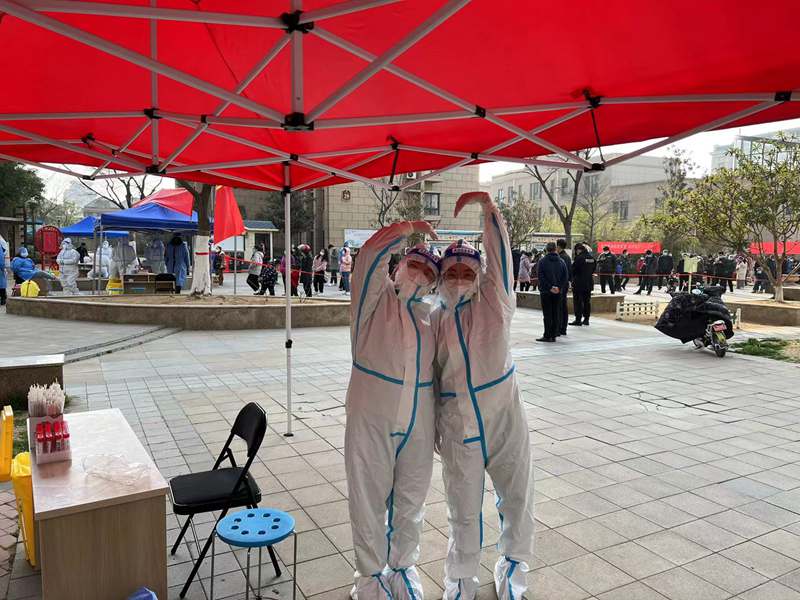 16:00,檢測進入尾聲,忙里偷閑和大家聊會天,身邊的“大白”來自各行各業,疫情防控戰打響,在這危難時刻,我們一同挺身而出,臨危受命,“逆行”沖往防疫第一線。大家聽從指揮、主動擔當的具體行動,充分體現了年輕黨員能打硬仗、敢打硬仗的優良品格!