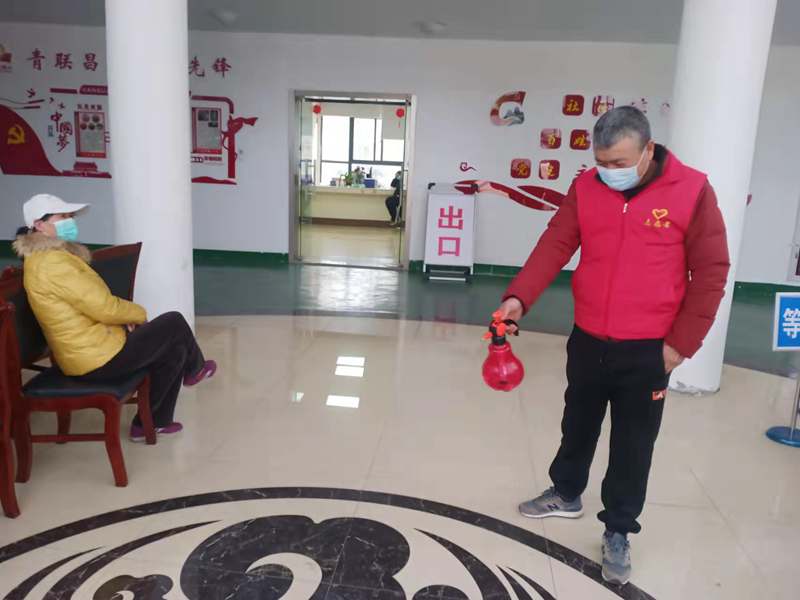 ?中午,出入的居民少了不少,老金帶上口罩,帶好手套,架上護(hù)目鏡,拿起消毒壺“走起”,閑不下來(lái)的他開始了日常的消殺工作。