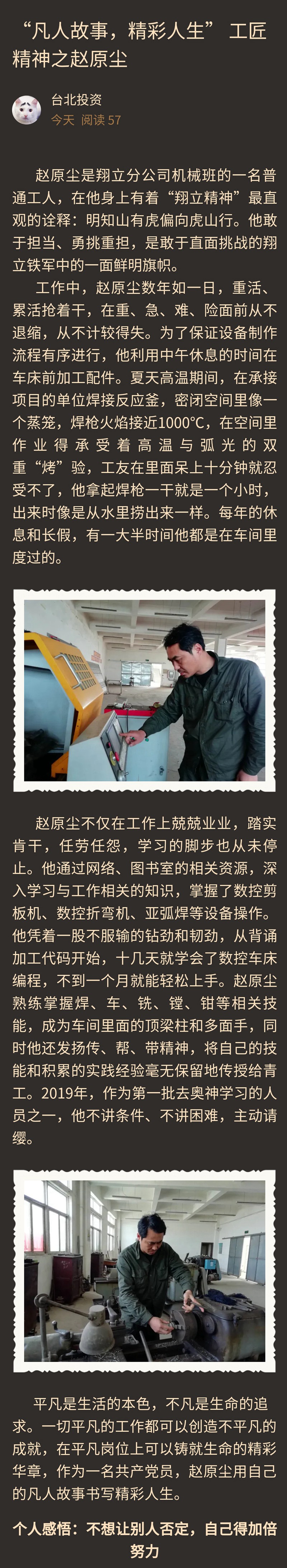 【匠心筑夢(mèng) 實(shí)干興企】“凡人故事,精彩人生” 工匠精神之趙原塵