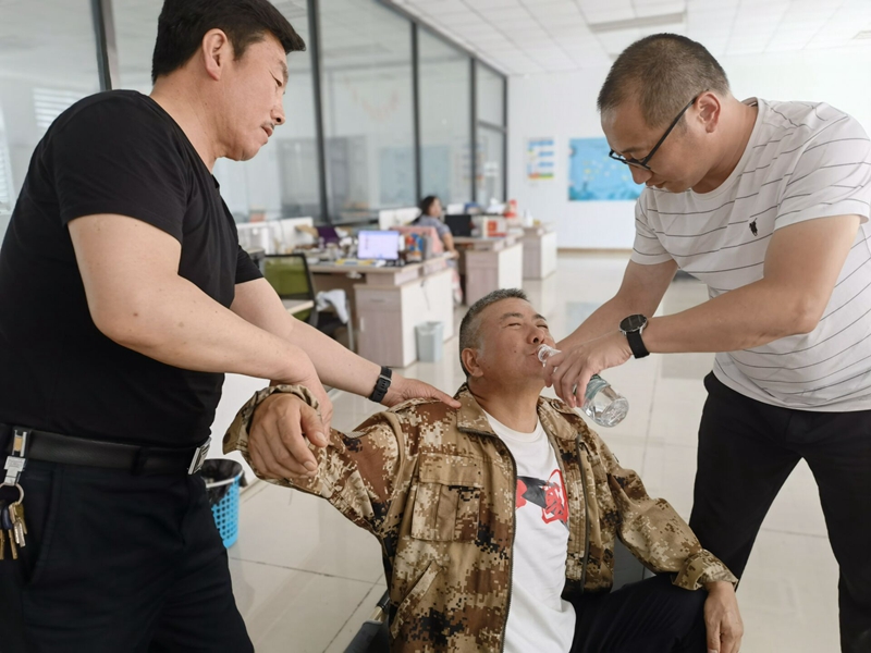 隨后演練開始,大家迅速轉(zhuǎn)移中暑職工轉(zhuǎn)移至通風(fēng)、陰涼、干爽的地方。