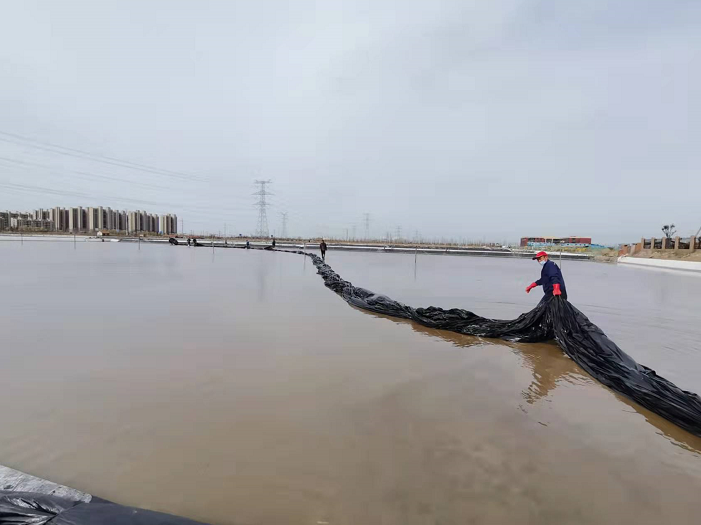 不負春光早起步,大干快上正當時。隨著我市疫情剛一解封,海州灣公司礦鹽復產工程立即開啟加速“奔跑”模式,經過前期充分的準備和精心部署,在331日疫情解封的第一天,安排貨車將第一批塑布運輸到位。次日早上7點,海州灣公司和翔立分公司全體員工在先鋒班組集合,開啟第一輪塑布安裝以及鹵水灌池工作,搶抓“小滿”前后十八天的池內長鹽黃金期。
