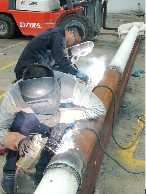 今年以來,隨著翔立分公司承接市政工程業務的不斷擴展,目前已經發展到從去年開始之初的路燈桿、路標牌、公交站臺的噴漆養護,到如今已經不斷擴展到綠化景觀小品的制作、路燈桿拆卸、道路監控設施的吊裝更換,路標牌的升高加接等。特別是1012日承接的新光路路標牌升高改造工程,翔立公司機械班充分發揮機械加工優勢,將熔化焊接與熱切割特種作業工種的技術充分發揮出來,精準的測量劃線、精確的平衡熱切割、精煉的熔化焊接技術,將三根9米路標牌立桿加接至11米長,并保證每根立桿同心圓直線偏差控制在2毫米之內,突顯翔立精工制造優勢打造出精品工程。