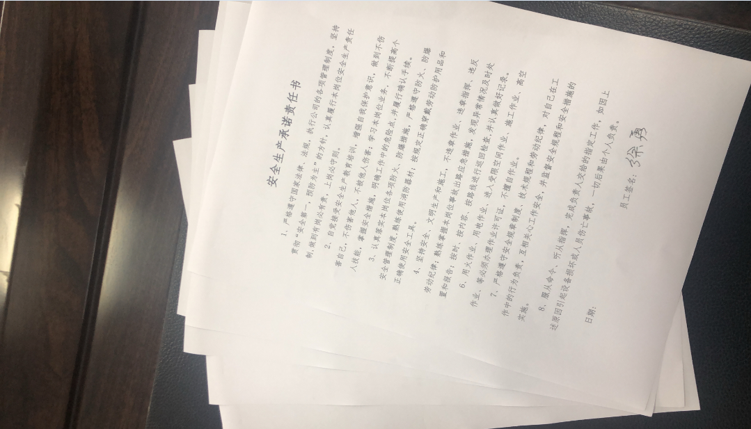 會后,逐步將安全承諾書和安全知識答卷發放至每個班組、灘頭,共計28份。