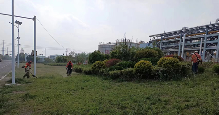 板橋工業(yè)園區(qū)祥和路、云港路、瑞和路等路段,隨處都可見到綠化工人忙碌的身影,他們不畏辛苦,搶時間、抓進度,對綠籬、綠化苗木進行修剪造型。園區(qū)路邊,機器轟鳴,除草工作有條不紊。綠化工人們頭戴防護帽,架著割草機,動作嫻熟,割草效率極高。三人一排、兩人一對,齊頭并進,戰(zhàn)線推進過的地方?jīng)芪挤置鳎粝乱黄R的坡面,賞析悅目。經(jīng)過多日持續(xù)奮戰(zhàn),已經(jīng)完成綠地雜草清理15萬平方米,綠籬修剪3萬平方米任務(wù)。為高標準完成二季度綠化管養(yǎng)目標奠定基礎(chǔ)。(劉永)