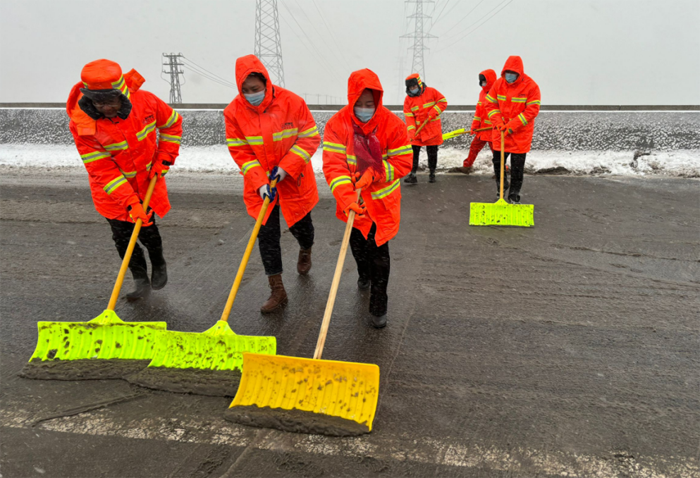 根據(jù)氣象臺發(fā)布的暴雪惡劣天氣預警,我市暴雪將持續(xù)到2月5日14時36分,徐圩新區(qū)清雪除冰工作仍需持續(xù)進行,悅升公司全員上下堅守一線、勠力奮斗戰(zhàn)持續(xù)與風雪抗爭到底。(李敏)