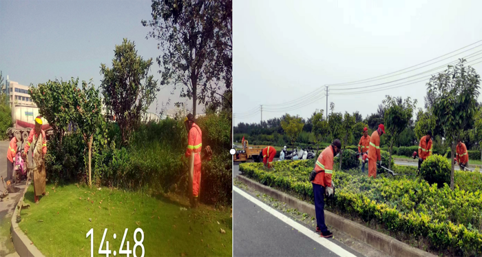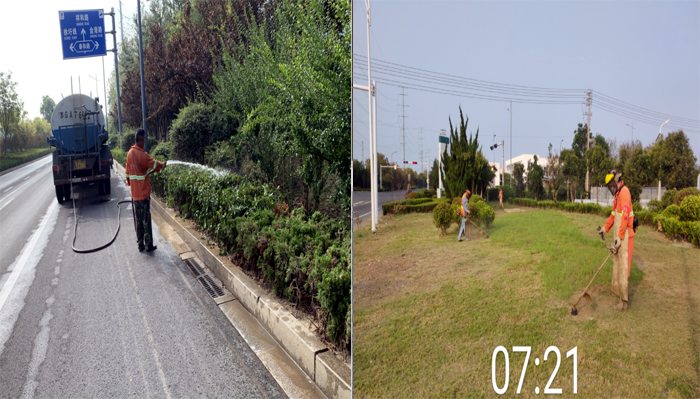 8月底,綠化養(yǎng)護(hù)班組兵分兩路強(qiáng)化綠地草坪進(jìn)行疏草、除雜等養(yǎng)護(hù)工作,對(duì)綠植進(jìn)行清枯枝、病蟲(chóng)枝整形修剪,保持喬灌木的整體外形美觀;集中力量加固樹(shù)撐,清除雜草2萬(wàn)余平方米。