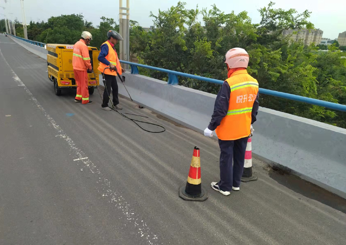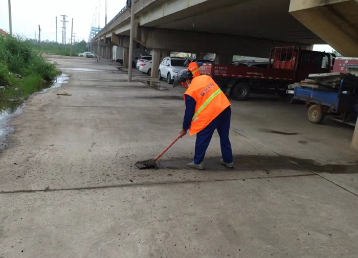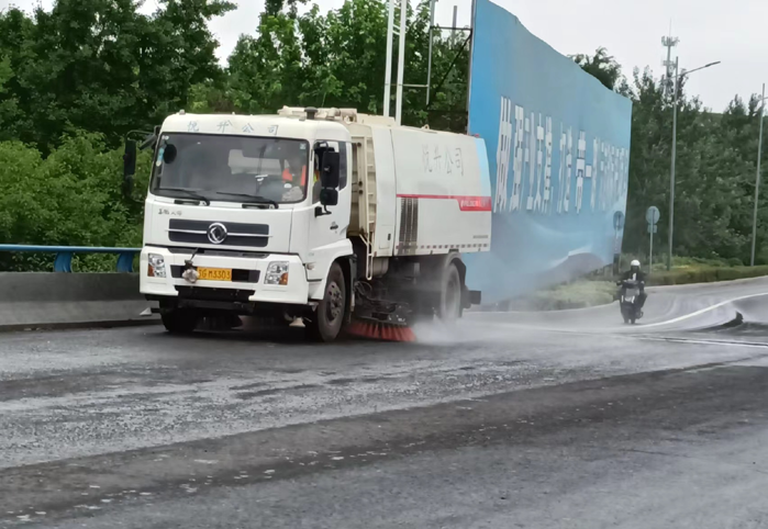 該公司針對橋面泄水孔、泄水管、排水道等地方安排專人檢查,養護清理的垃圾及時處理到位,不得堆放在泄水孔周邊。汛期視情況加大清理頻次。橋下衛生死角雜物集中撿拾、打包、裝袋 、回場。橋面護欄亂懸亂掛廣告、標語徹底清除及時沖洗,恢復原貌、露出底色。橋梁伸縮縫采取人工與機械結合重點沖洗清掃,保障伸縮縫干凈整潔。目前,所管轄區大小橋梁已經水洗清掃整治到位。有效降低橋揚塵現象的發生,增強行車安全系數,全面提升園區道路環境質量