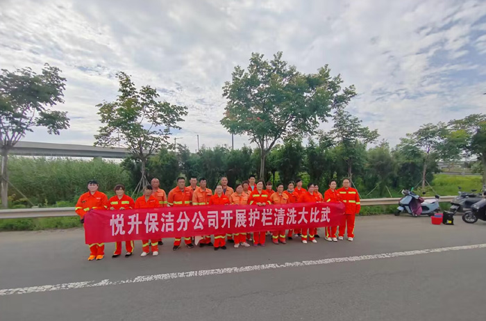 保潔分公司開展護欄清洗大比武
